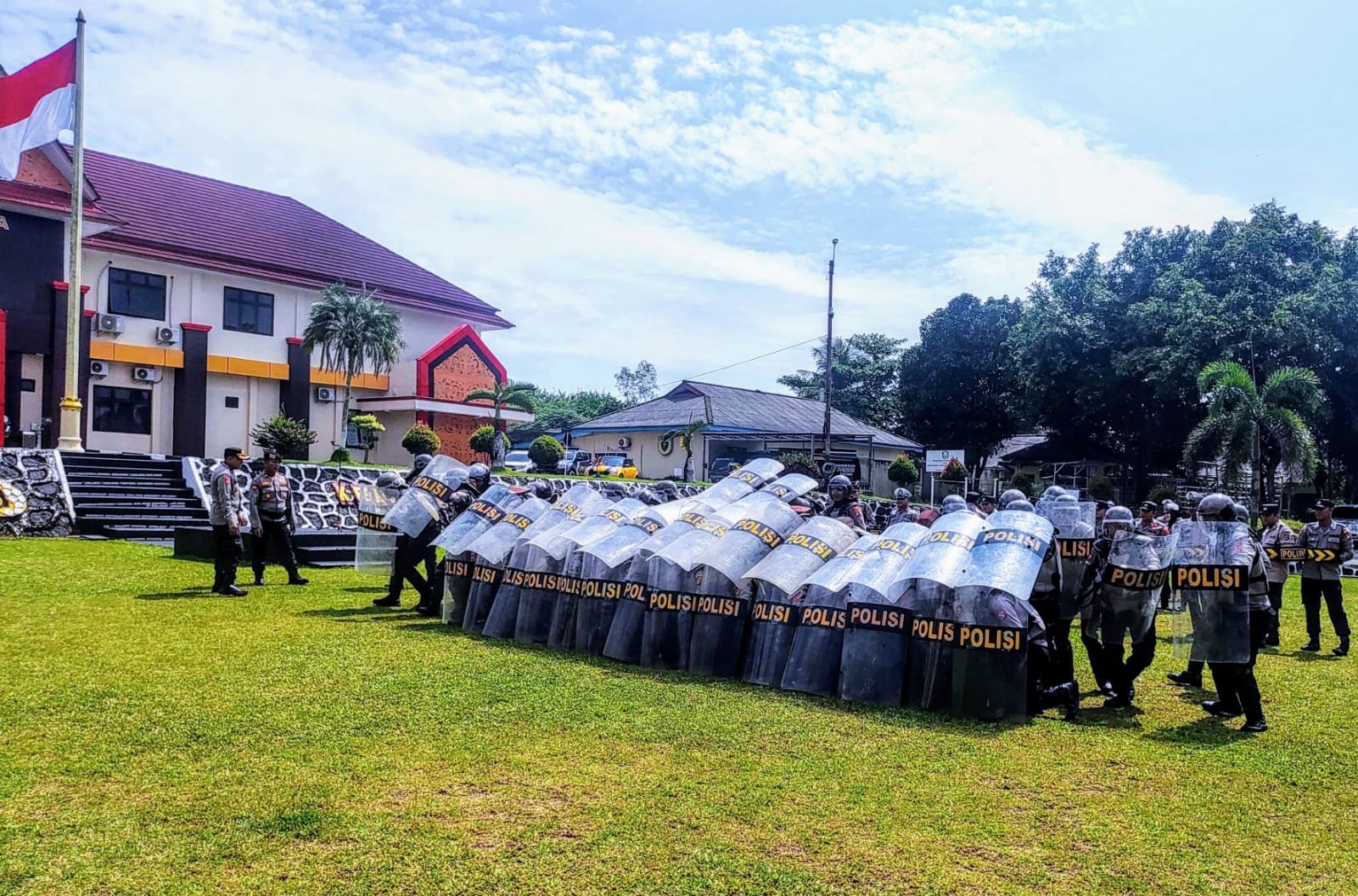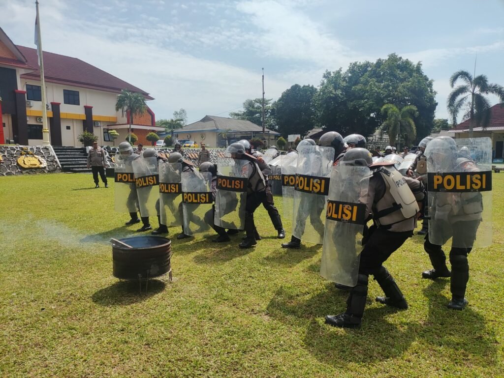 Sebanyak (100). personel dari Berbagai satuan fungsi dilibatkan. dalam latihan Dalmas, Personel di latih untuk meningkatkan kesiapsiagaan. serta kemampuan taktis dalam menghadapi kemungkinan. terjadinya aksi unjuk rasa.