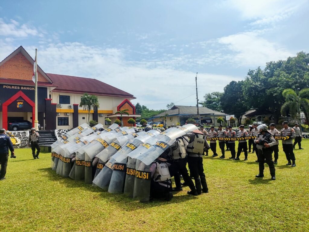 Global Rise TV (Bangka Sungailiat)-Mengantisipasi potensi gangguan. keamanan dan ketertiban masyarakat (kamtibmas) menjelang peringatan Hari. Buruh Internasional (May Day) pada (1). Mei, Polres Bangka melakukan latihan pengendalian massa (Dalmas) di halaman Mapolres Bangka. Selasa (30/04/2025).