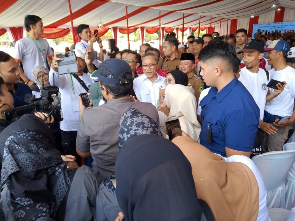 Jambore penyuluh pertanian Se-Jawa Barat Tahun 2025 dihadiri langsung Mentri Koordinator Bidang Pangan Dr.(H.C) H.Zulkifli Hasan.SE MM , turut hadir pula Bupati Kuningan Dr.H.Dian Rachmat Yanuar.M.Si , Wakil Bupati Kuningan Hj.Tuti Andriani.SH.M.Kn , Pj.Sekda Kuningan Beni Prihayatno.S.Sos M.Si , Anggota DPR RI H.Rokhmat Ardiyan .MM , Kepala Badan Penyuluhan dan pengembangan SDM Pertanian Dr.Idha Widi Arsanti.SP.MP serta undangan lainya.
