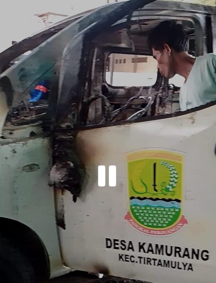 Global Rise TV (Karawang)-sebuah mobil dinas yang dipergunakan untuk operasional di wilayah desa Kamurang Kecamatan Tirtamulya dikabarkan terbakar hingga bagian dalam habis diduga akibat anak -anak yang bermain blonsom yang bahan peledak nya menggunakan bensin atau spirtus