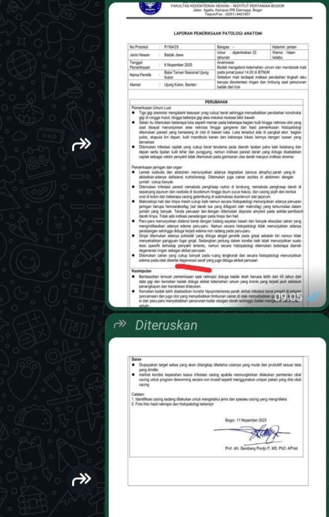 Temuan ini memberikan gambaran penting bagi peningkatan standar pengelolaan kesehatan Badak Jawa di habitat alaminya. Balai TNUK bersama IPB University, akademisi lainnya, dan mitra konservasi akan menyiapkan langkah lanjutan berupa analisis komprehensif untuk penguatan deteksi dini penyakit, pengelolaan habitat, dan pemantauan kesehatan populasi.