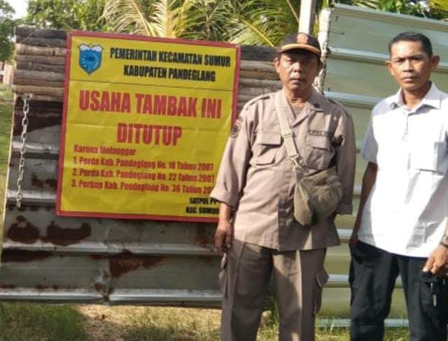 Camat Sumur Aang Sumarna membenarkan penutupan tambak udang ilegal tersebut atas perintahnya dengan mengutus Satpol-PP di dampingi oleh anggota Polsek Sumur dan apartur desa tamanjaya bersama warga dan tokoh masyarakat setempat.