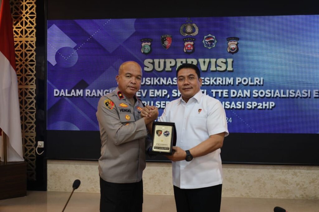 Global Rise TV (Serang)-Wakapolda Banten Brigjen Pol Hengki menyambut kedatangan Tim Supervisi Pusiknas Bareskrim Polri dalam rangka optimalisasi penerapan dan peningkatan kemampuan Penyidik/Penyidik Pembantu dalam penggunaan Aplikasi Elektronik Menajemen Penyidikan (EMP), (Tanda Tangan Elektronik (TTE), Sistem Penanganan Perkara Pidana Terpadu berbasi Teknologi Informasi (SPPT-TI) dan Pelayanan Surat Pemberitahuan Perkembangan Hasil Penyelidikan atau Penyidikan (SP2HP) Online, bertempat di Aula Ditreskrimum Polda Banten pada Rabu (06/11).