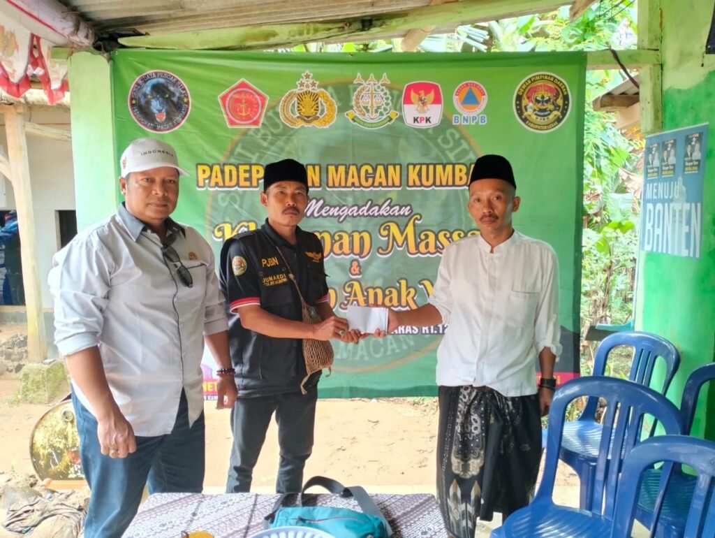Global Rise TV (Lebak)-Padepokan Macan Kumbang menggelar khitanan massal, santunan anak yatim dan dhuafa, bertempat di Kampung Cikaraton RT 12 RW 05, Desa Sumber waras, Kecamatan Malingping, Kabupaten Lebak, Provinsi Banten, Senin -14-4-2025.