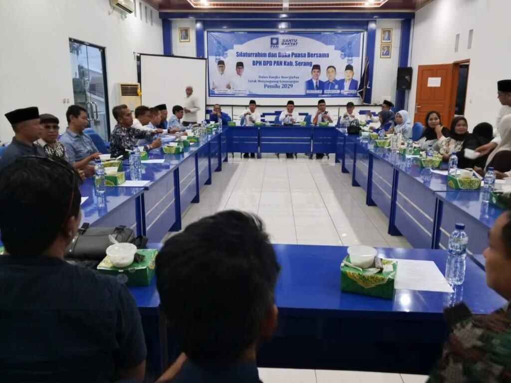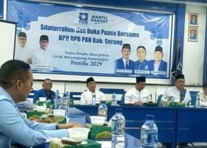 Global Rise TV (Serang)– Badan Pengurus Harian (BPH) DPD Partai Amanat Nasional (PAN) Kabupaten Serang menggelar kegiatan Silaturahmi dan Buka Puasa Bersama pada Sabtu, 28 Februari 2024. Kegiatan tersebut dilaksanakan di Aula DPW PAN Provinsi Banten, Taktakan, Kota Serang, dalam suasana penuh kekeluargaan dan semangat perjuangan.