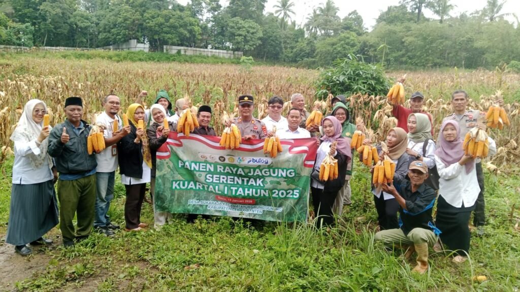 Global Rise TV (LEBAK) .- Dalam rangka mendukung program prioritas Kapolri Presisi (Prediktif, Responsibilitas, Transparansi, dan Berkeadilan) dan Asta Cita Presiden Kapolsek Warunggunung beserta Muspika dan sterkholder , gapoktan desa Sukaraja Laksanakan Giat Panen Raya Jagung Jenis Hibrida SS-2 Lahan di kp.Kaso Cibodas Desa Sukaraja Kecamatan Warunggunung Kabupaten Lebak. (22/01/2026).