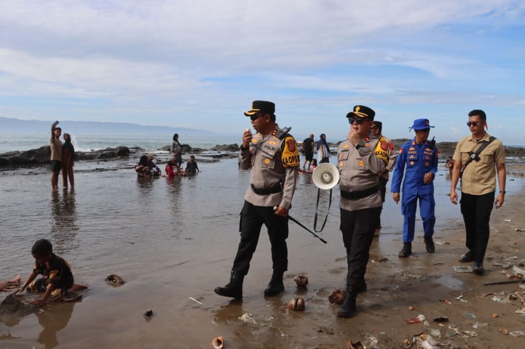 Pantau Langsung Pesisir Pantai, Kapolres Sukabumi Himbau Wisatawan Jangan Berenang Terlalu Jauh Utamakan Keselamatan Keluarga