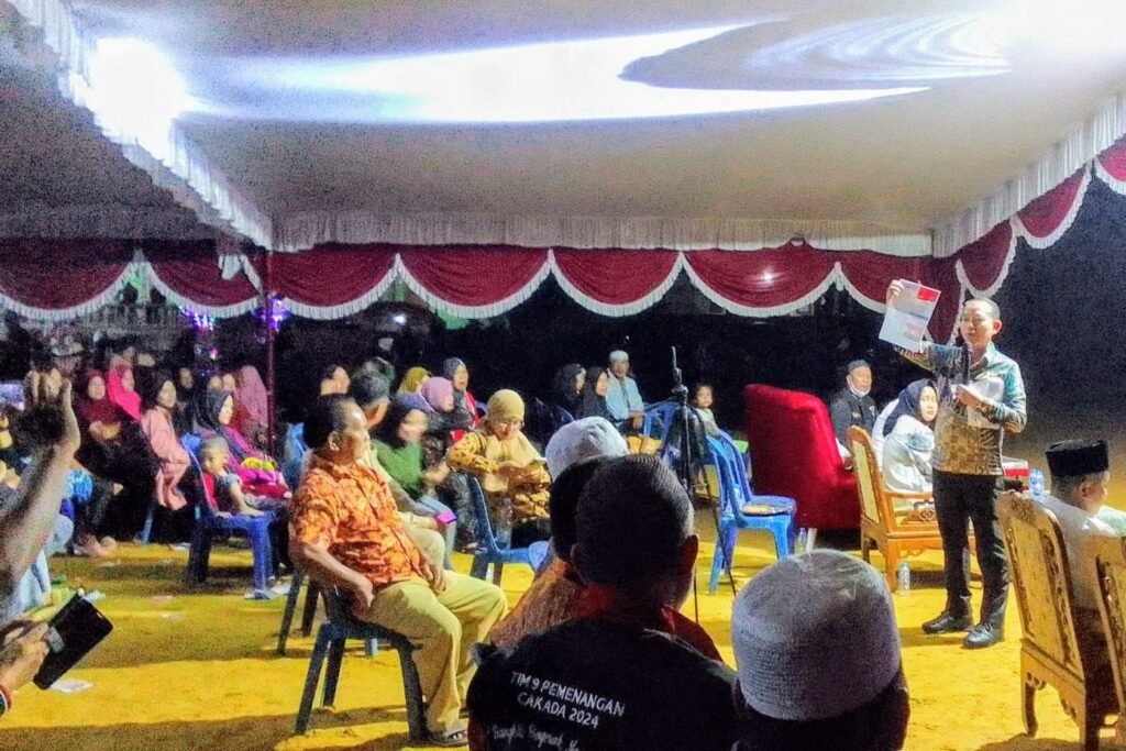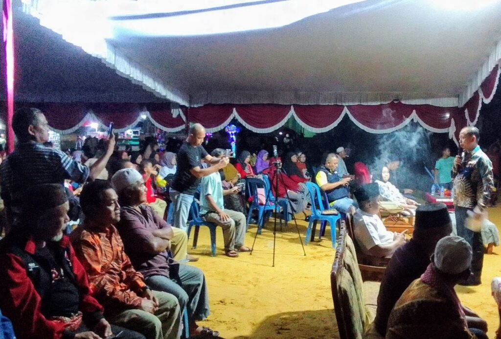 Pada malam hari ini atas ketergangguan baik pada aktivitas, ibu Bapak kita yang biasanya kalau sudah salat isya bahwa ibu bapak kita sudah kumpul dengan keluarga, Bercengkrama dengan keluarga, ada yang ngasuh anak, ada yang ngasuh laki, ada yang ngasuh bini, tapi dengan kehadiran kami pada malam hari ini mohon maaf mungkin agak terganggu tapi tidak lama, paling sekitar (2), jam”, Ungkapnya,