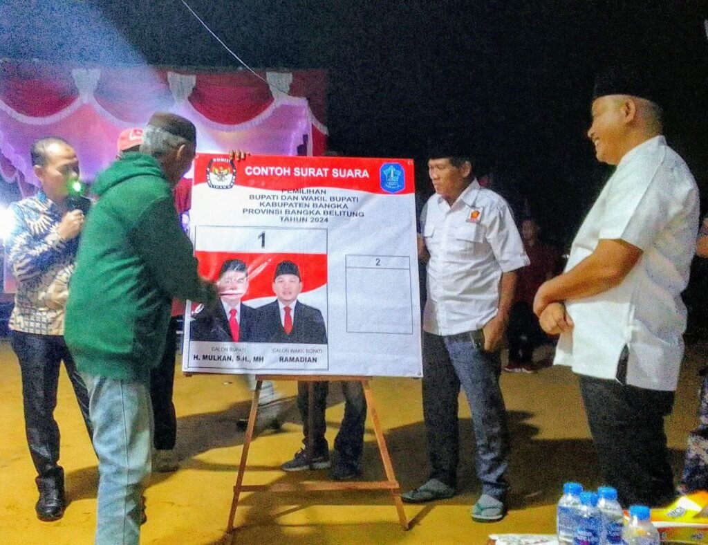 “Kami salah satu Calon tunggal untuk Bupati dan wakil Bupati Bangka periode 2024-2029. Bahwa ini bukan keinginan kami untuk Calon tunggal tetapi di detik-detik pendaftaran bahwa tidak ada putra-putri di Kabupaten Bangka yang mencalonkan Bupati dan wakil Bupati bahkan pendaftaran pertama sesuai peraturan PKPU, tanggal (27) Agustus sampai (29) Agustus”, Jelas Mulkan,