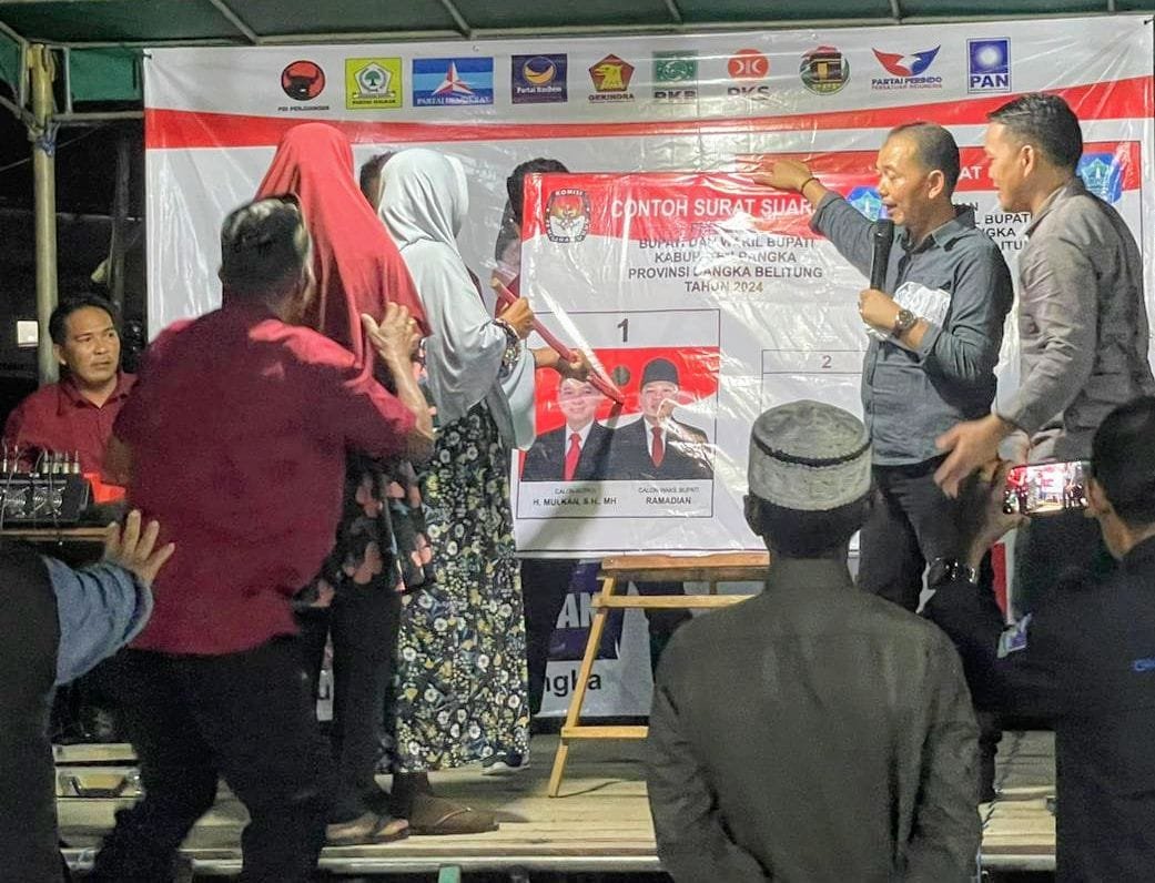 “Kampanye terbuka pasangan Mapan tersebut dihadiri oleh ratusan Simpatisan, pendukung yang berasal dari warga Belinyu, antusias masyarakat terhadap Mulkan, Ramadian, terlihat sangat luar biasa, tak pelak masyarakat yang hadir pada saat kampanye menyatakan sikap mendukung penuh pasangan calon Mapan, dan mereka pun berjanji memenangkan paspor tersebut di Pilkada serentak 2024 Nanti,