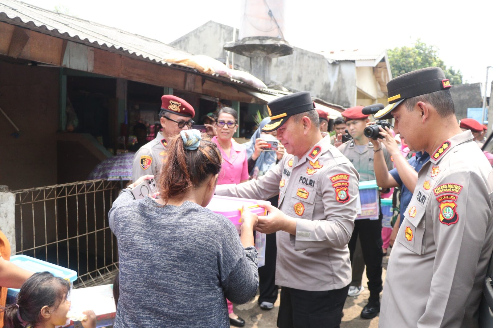 Karobinopsnal Bareskrim Polri, Brigjen Pol Raden Yoseph Wihastono Yoga Pranoto didampingi Kapolres Metro Tangerang Kota Kombes Pol Zain Dwi Nugroho dan jajaran Bareskrim Mabes Polri maupun Bhayangkari, melaksanakan bhakti sosial (baksos) Bareskrim Polri Peduli Banjir di lokasi Pengungsian RPH TUM, Kampung Candulan, Kelurahan Petir, Kecamatan Cipondoh. Kamis, (6/3/2025) pagi WIB.