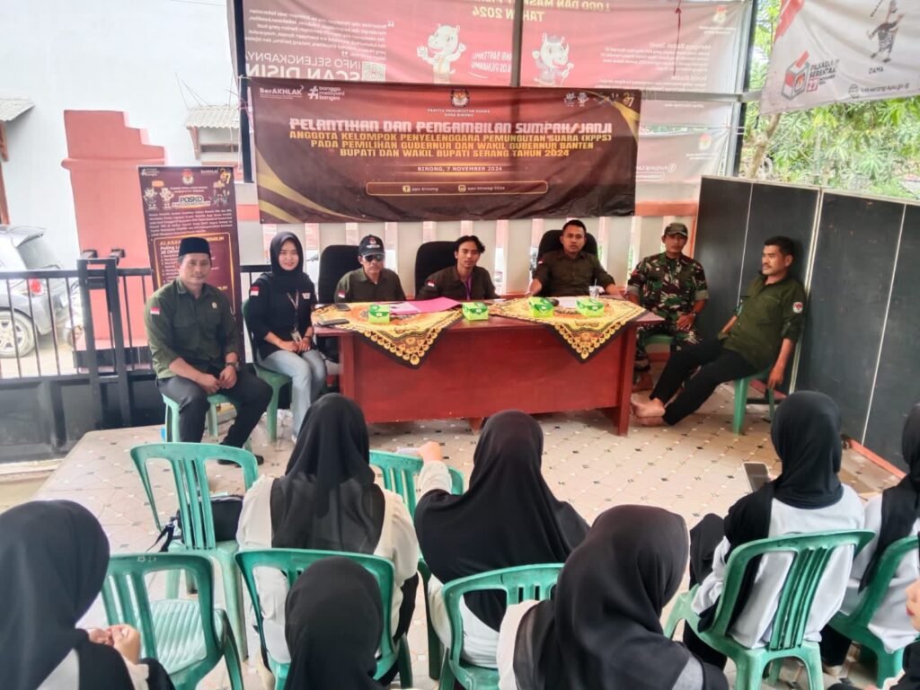 Sebelum melaksanakan tugas pada tgl 27 November 2024, Angota kelompok penyelenggara pemungutan suara (KPPS) pada pemilihan umum Pilbup dan Pilgub 2024, mengikuti kegiatan pelantikan dan pengukuhan yang di selenggarakan di Aula Kantor Desa Binong.