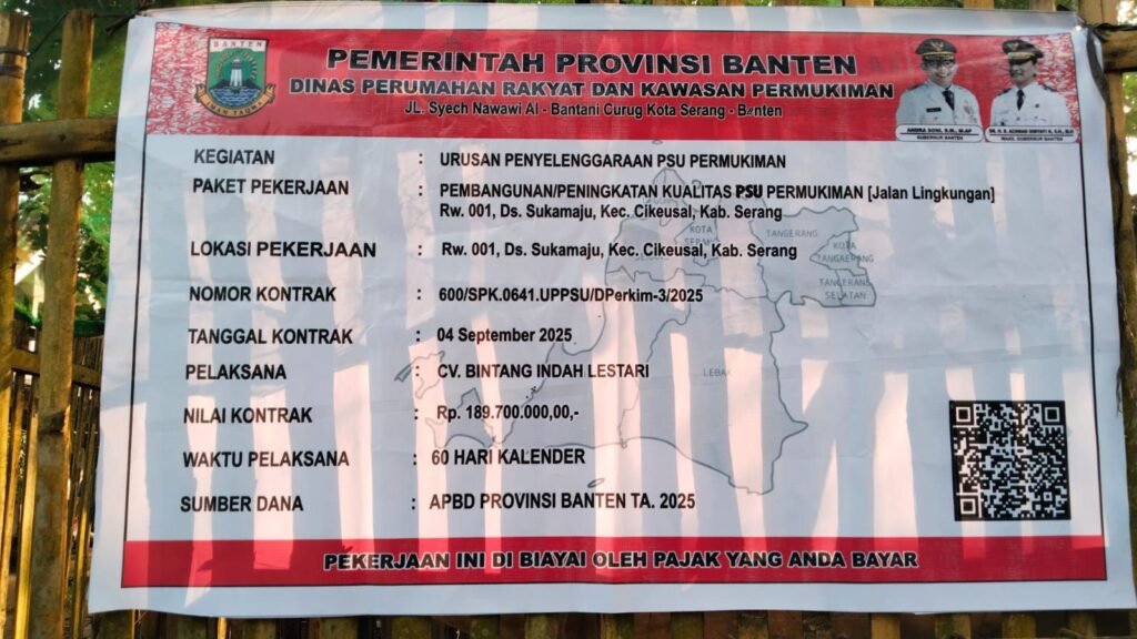 (Serang)- Kegiatan urusan penyelenggaraan PSU Permukiman “Pembangunan Peningkatan Kualitas, PSU, Permukiman (jalan Lingkungan Kp. Katupang Jati RW. 001 Ds. Sukamaju Kec. Cikeusal Kab. Serang – Banten., diduga asal asalan dan akhirnya warga setempat nembongkar jembali dan memasangkan kembali (Memperbaiki) dengan bergotong royong. Senin 22 September 2025.