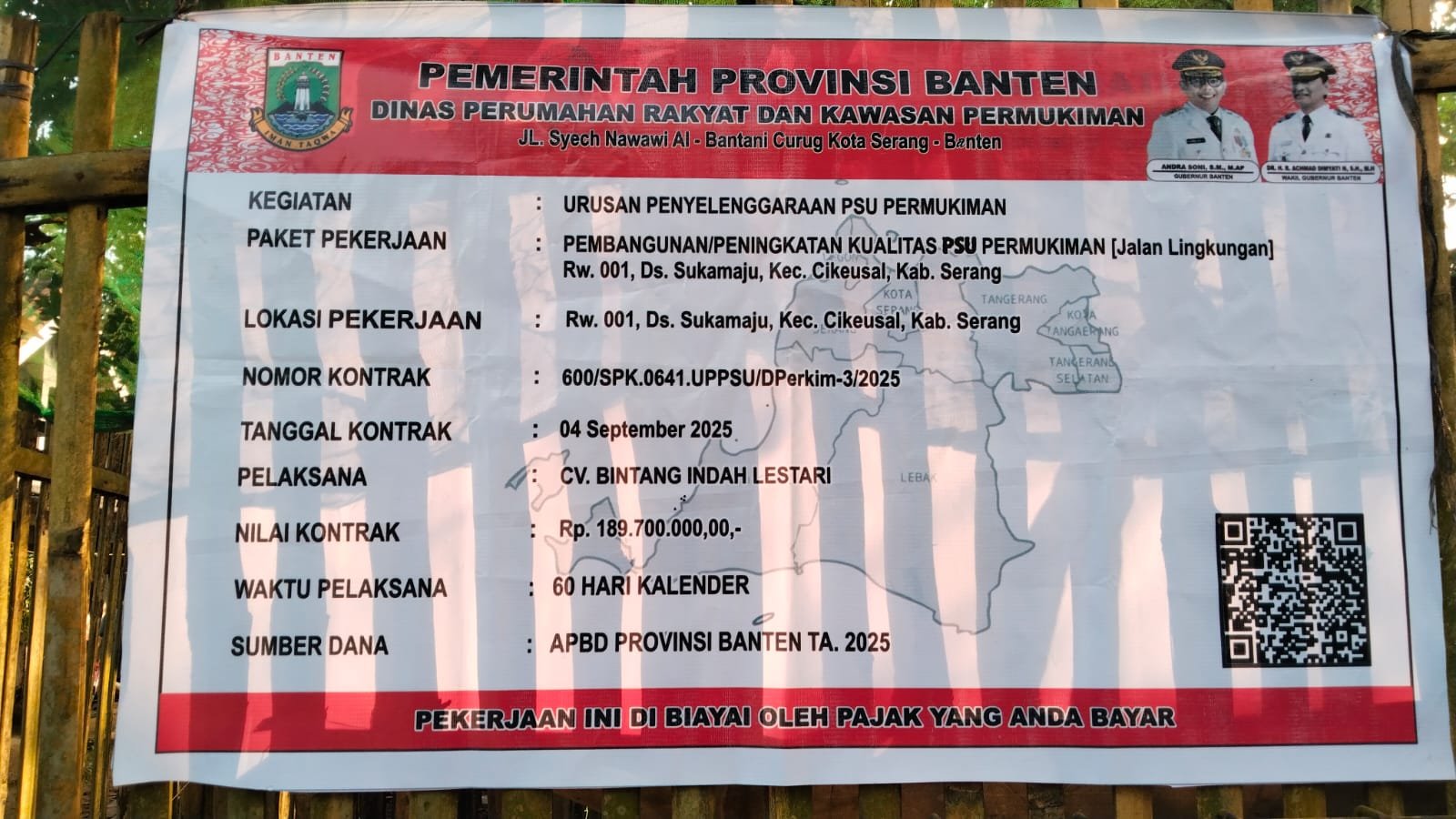 Di Ketahui Pemerintah Provinsi Banten Melalui Dinas Perumahan Rakyat dan Kawasan Permukiman Melaksanakan Proyek Vaving Block Aspirasi Dewan. Yang Berlokasi di Kp Katupang Jati Desa Sukamaju Kec. Cikeusal yang di laksanakan oleh”