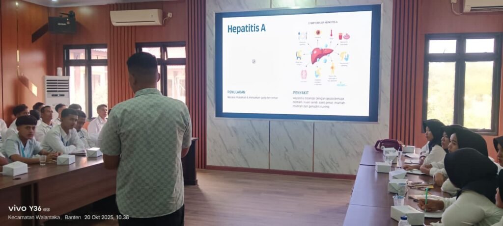Dalam sesi pembekalan, Mitra Dokter Polres Serang dr. M. Juliansyah menyampaikan materi mengenai pentingnya penerapan Perilaku Hidup Bersih dan Sehat (PHBS) dalam pelaksanaan tugas SPPG.