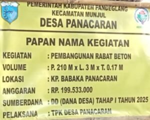 Global Rise TV (Pandeglang)-Pemerintah desa (pemdes) pancaran Sedang Realisasi kan Rabat beton yang di anggarkan dari dana desa (DD) tahap 1 (satu) tahun 2025, dalam pengerjaan melali, Tim pelaksana kegiatan (TPK) Dengan anggaran” Rp, 199,533,000, panjang 210 m, yang beralokasi di kampung babakan desa panacaran kabupaten pandeglang provinsi banten, berjalan Lancar, dengan baik dalam pengerjaan mengedepankan program padat karya, sabtu :12-04-2025.