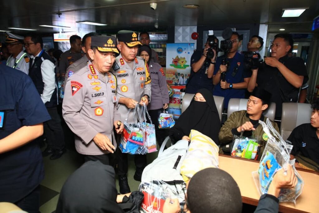 Kapolri juga menjelaskan bahwa masyarakat dapat memanfaatkan layanan informasi yang tersedia, termasuk command center dan media center yang menyediakan informasi secara real time mengenai kondisi lalu lintas maupun kebijakan terbaru terkait arus mudik. “Kami juga menyiapkan pengamanan di atas kapal serta menyiagakan personel di wilayah Lampung apabila ada potensi gangguan kamtibmas. Selain itu tersedia berbagai layanan bagi pemudik seperti pos pelayanan, dapur lapangan, dan fasilitas lainnya,” jelas Kapolri.