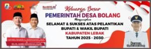 Pemerintah Desa Bolang tak ayal Mengucapkan selamat dan sukses atas di lantik nya Bupati kabupaten Lebak (Moch.Hasbi A Jayabaya,S.H) dan wakil Bupati (Ir.H.Amir Hamzah,M.Si) untuk periode 2025-2030.