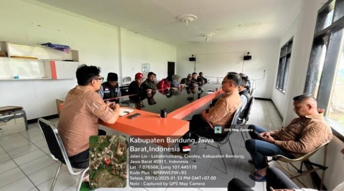Global Rise TV (Bandung)-Kepala Desa Rawabogo, Kecamatan Ciwidey, Kabupaten Bandung melaksanakan rapat penanggulangan bencana banjir. Selasa (9/12/2025)