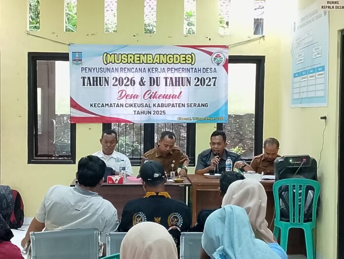 Pemerintah Desa Cikeusal kembali menggelar Musyawarah Rencana Pembangunan Desa kegiatan ini merupakan agenda tahunan yang membahas soal rencana kerja dan realisasi anggaran Tahun 2026.,yang bertempat di Aula kantor Desa Cikeusal. Selasa 16/09/25.
