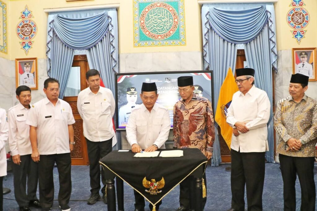 Global Rise TV ,(Serang Banten)–Pemerintah Kabupaten (Pemkab) Serang dan Yayasan Al Bahru melakukan penandatanganan Memorandum of Understanding (MoU) atau Nota Kesepahaman tentang Kerjasama Pembangunan dan Pengelolaan Masjid Terapung Banten (MTB).