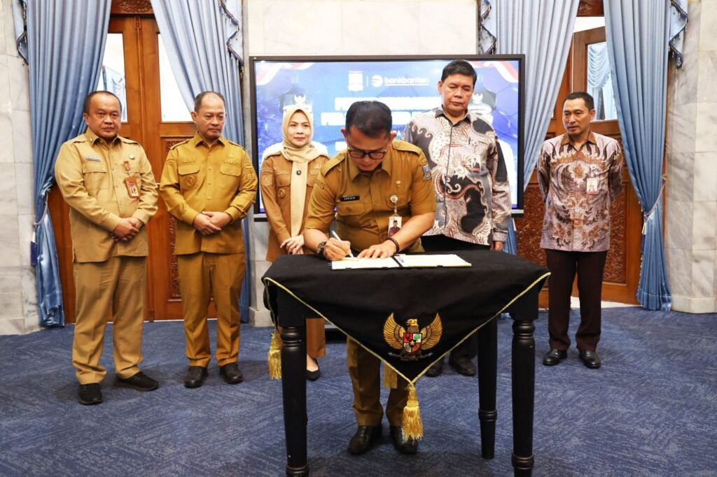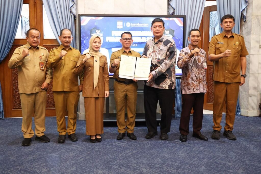 Global Rise TV (Banten)–Pemerintah Provinsi (Pemprov) Banten mengajak Pemerintah Kabupaten (Pemkab) Serang mendukung keberlangsungan dan penguatan Bank Banten. Hal itu diungkapkan Asisten Daerah (Asda) Bidang Administrasi Umum Sekretariat Daerah (Setda) E.A. Deni Hermawan saat acara penandatanganan kerja sama antara Pemkab Serang dengan PT Bank Pembangunan Daerah Banten (Perseroda) Tbk di Pendopo Bupati Serang, Senin (15/9/2025).