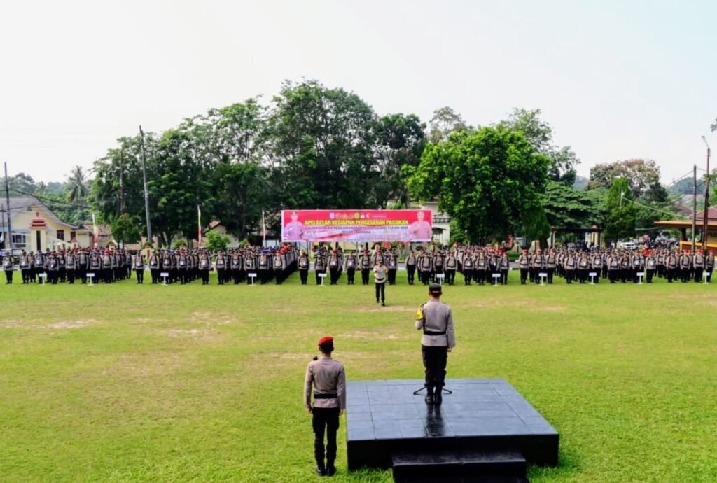 Global Rise TV (Bangka)-Kapolres Bangka AKBP Deddy Dwitiya Putra, mengambil apel pergeseran pasukan, (Serpas) Polres Bangka, dalam pengamanan tempat pemungutan suara (TPS) pada Pemilihan kepala Daerah, (Pilkada) ulang tahun 2025 di wilayah Kabupaten Bangka, Bertempat di Lapangan Mapolres Bangka, Selasa (26/08/205)