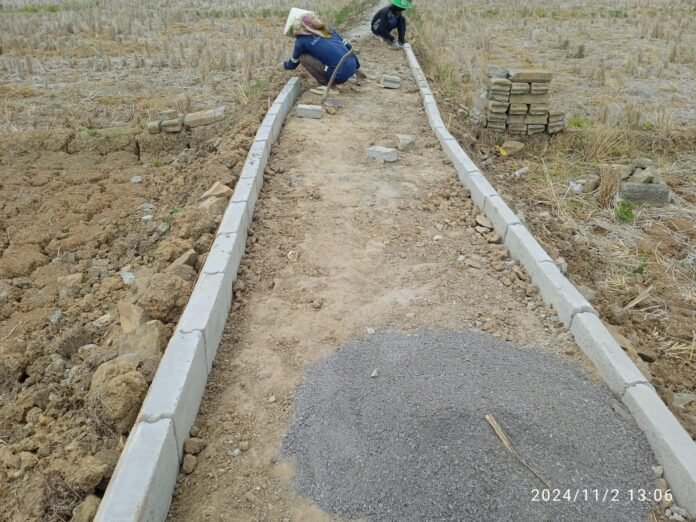 “masih lanjut kami selaku penerima manfaat bangunan ini sebelum selesai semua kami warga setempat ingin di bongkar kembali di karna kan kami selaku penerima manfaat kepengen bangunan paving blok ini kuat dan tahan lama apalagi posisi bahu jalanya berada di pesawahan kiri kanan sawah dan rawan longsor apabila sudah musim penghujan pungkasnya.
