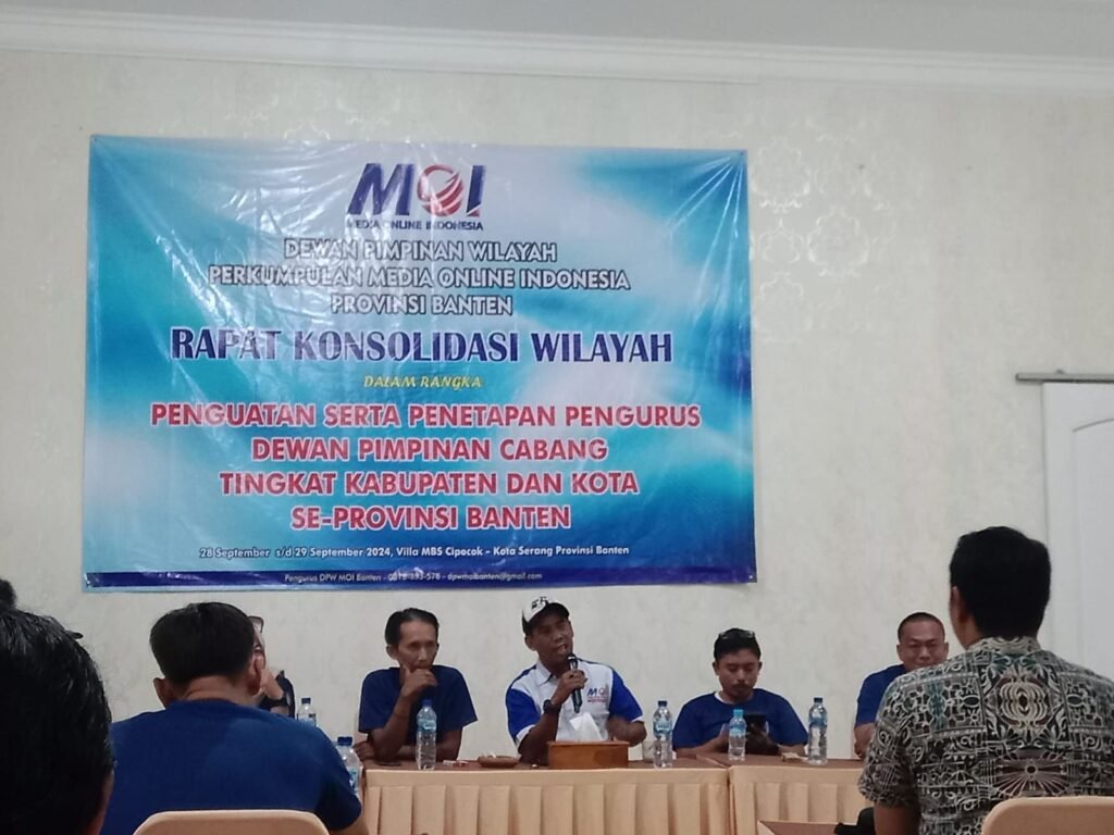 Global Rise TV (Serang)-Perkumpulan Perusahaan Media Online Indonesia (MOI) Provinsi Banten baru-baru ini mengadakan rapat konsolidasi wilayah yang bertujuan untuk memperkuat organisasi dan menetapkan pengurus DPC di tingkat kabupaten dan kota di seluruh Provinsi Banten. Acara ini berlangsung dalam suasana yang penuh semangat dan dihadiri oleh berbagai pihak penting dalam organisasi, sabtu : 28/09/2024.