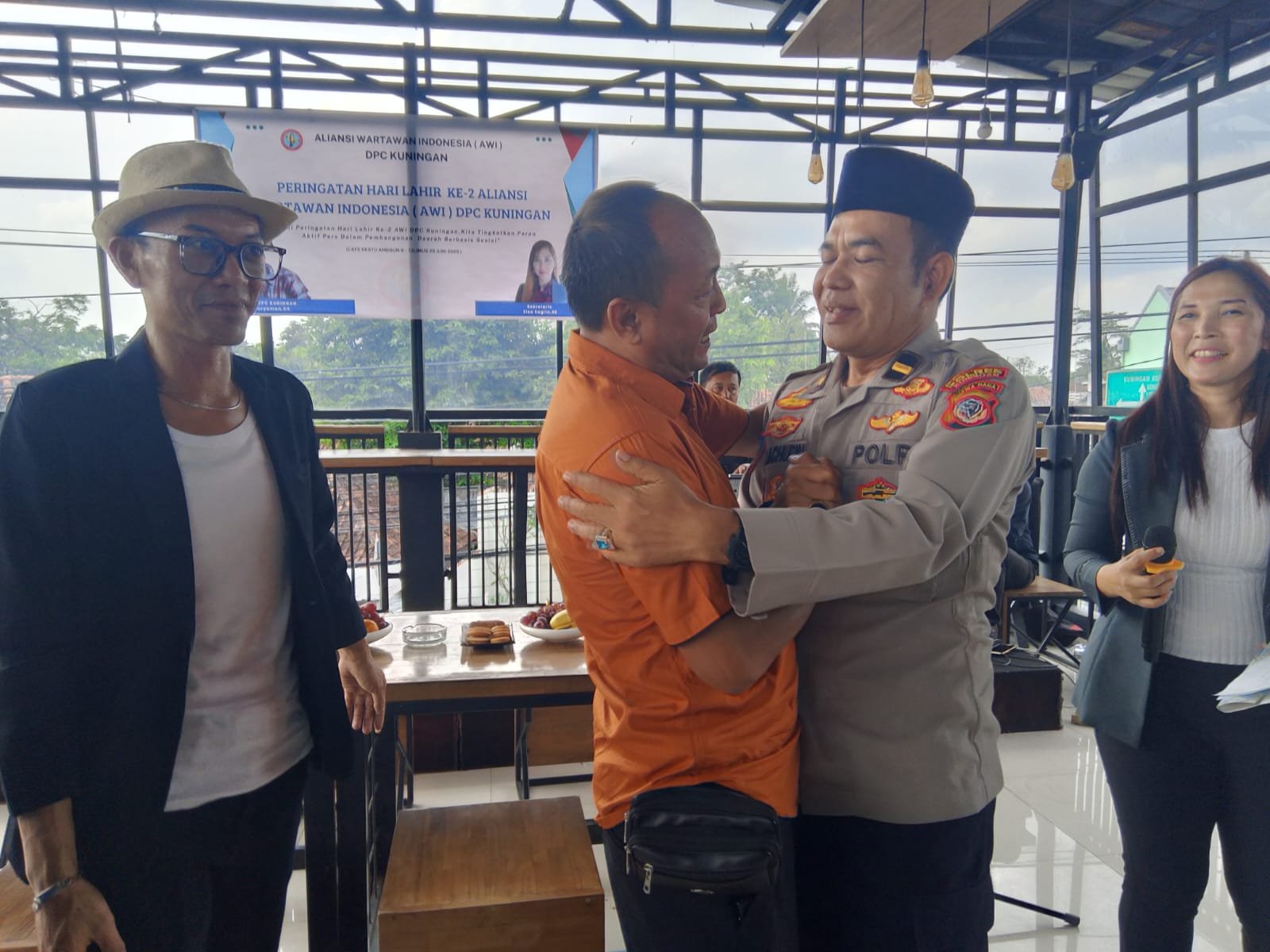 HUT DPC.AWI Kabupaten Kuningan di hadiri Kapolsek Cilimus , serta organisasi kewartawanan dan para jurnalis .