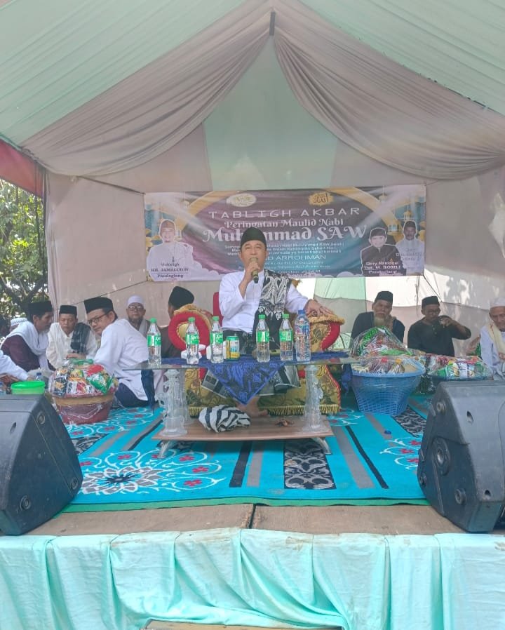 Peringatan Maulid Nabi Muhamad SAW diawali dengan pembacaan Ayat Suci AL-Quran oleh Qori internasional Kiai Lomri atau yang akrab di panggil Kiai Timris Dari kota Panimbang Banten dengan lantunan Ayat-Ayat Suci AL-Quran Dan di lanjutkan dengan Tablig islamiah Kiai Haji Jamaludin dari Pandeglang Banten dalam Rangka memperingati Maulid Nabi Muhamad SAW.Dengan Tema’Semoga dengan Cinta dan teladan Nabi Muhamad SAW selalu menginsfirasi kita Dalam kehidupan sehari-hari membangun pondasi pemuda yang berahlaQul karimah.