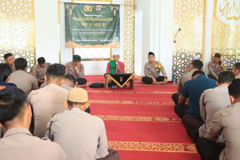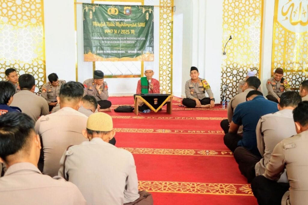 Global Rise TV (Bangka Sungailiat)- Polres Bangka, menggelar peringatan Maulid Nabi Besar Muhammad SAW, 1447 H/2025 M. Bertempat di Masjid Al, Inda Polres Bangka, Mengangkat tema dengan meneladani akhlak Rasulullah SAW, Wujudkan Polri. Presisi dalam upaya Mendukung asta cita, hadir dalam peringatan Maulid Nabi yakni Kapolres Bangka, AKBP Deddy Dwitiya Putra, dan Pejabat utama personel Polres Bangka, serta (ASN) yang, Beragama Islam Kamis (04/09/2025)