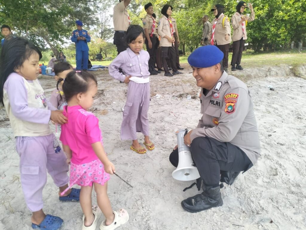 Global Rise TV (Bangka Sungailiat)- Personel Pos pengamanan Pos- Pam Matras Sungailiat, melaksanakan patroli serta, memberikan Himbauan, keselamatan kepada para pengunjung pantai Matras, Kamis (25/12/2025).