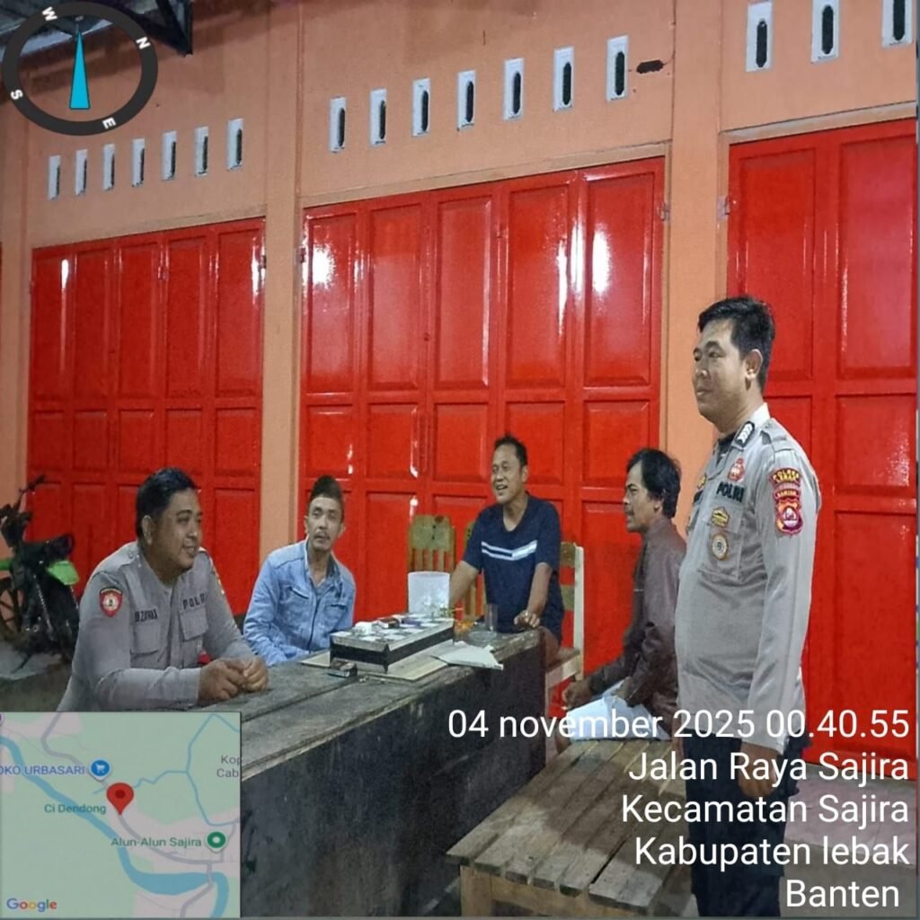 Global Rise TV (Lebak) – Polsek Sajira Polres Bripka Agus bersama Bripka Febri melaksanakan patroli dialogis dan sambangi warga Berikan Himbauan Untuk menjaga situasi kamtibmas yang aman dan kondusif di sekitar wilakum Kec. Sajira Lebak, Selasa (04/11/2025) 00.30 Wib
