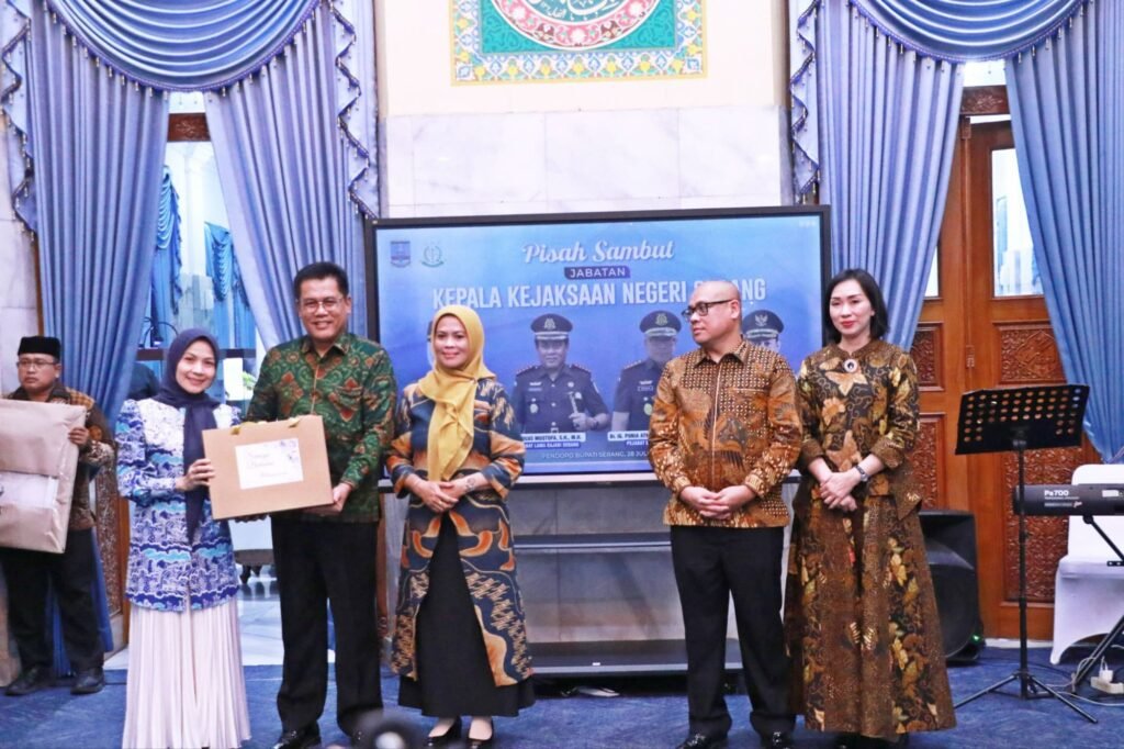 Bupati Ratu Zakiyah mengapresiasi pengabdian Lulus Mustofa selama menjabat sebagai Kajari Serang dan mengucapkan selamat bertugas kepada IG. Punia Atmaja.