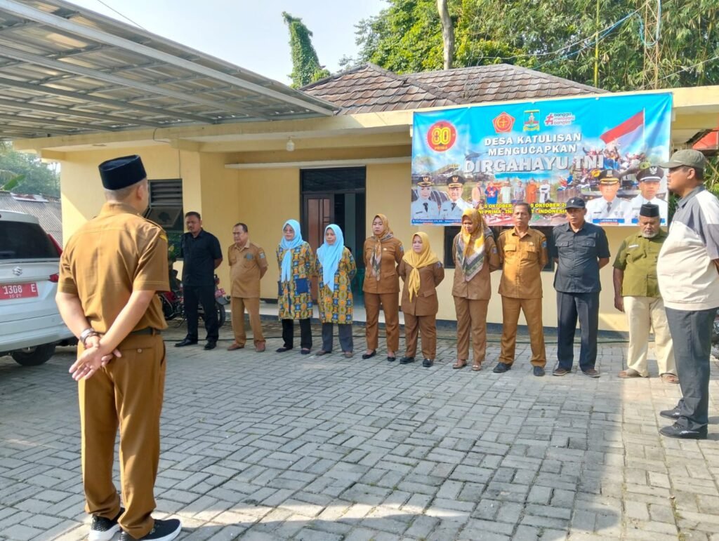 Ali Robaina SE. Selaku PJ Desa Katulisan Menyampaikan “Apel Senin pagi adalah kegiatan rutin di instansi pemerintah desa Katulisan yang bertujuan untuk pembinaan disiplin, peningkatan semangat kerja, dan penyampaian informasi. Kegiatan ini menjadi sarana untuk membangun kebersamaan, mengingatkan kembali tugas dan tanggung jawab, serta memberikan Intruksi dari Pihak Pemerintah Kecamatan Cikeusal Kabupaten Serang Serta memberi arahan terkait hal hal Kegiatan yang akan di laksanakan Pada Satu Minggu Kedepan.