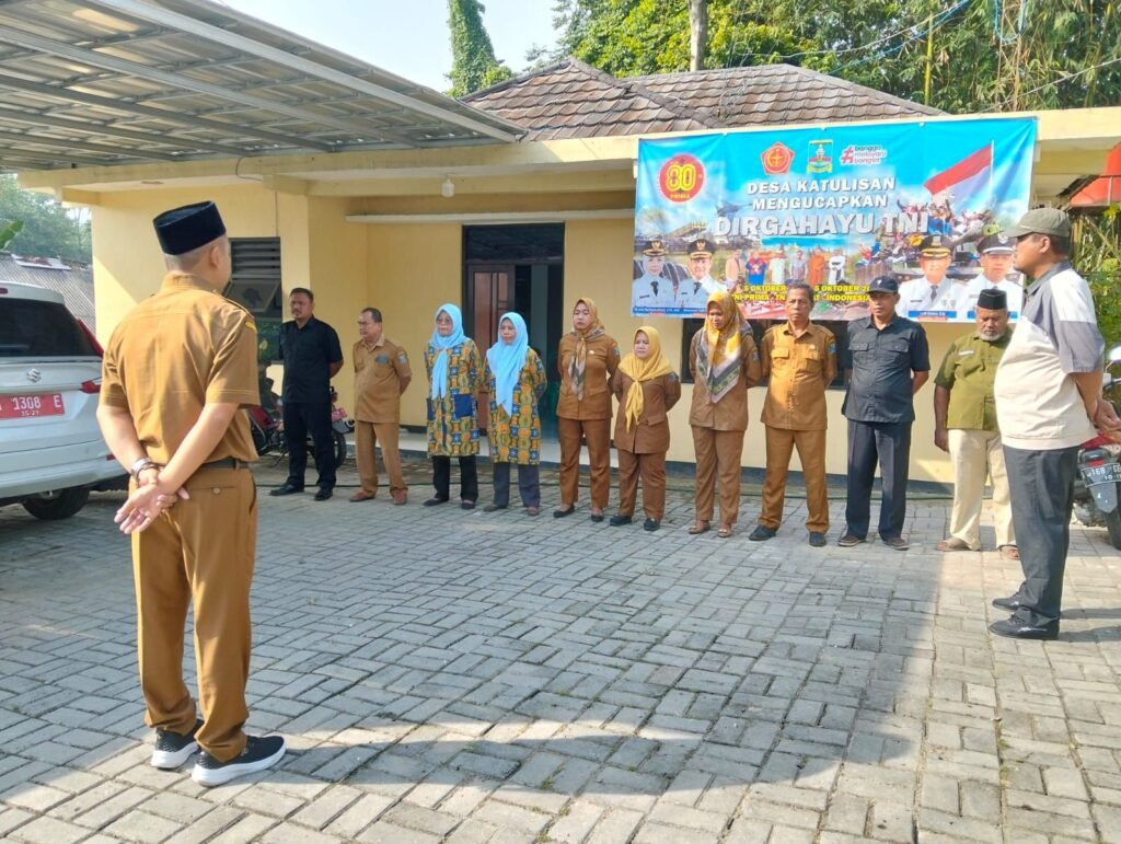 PJ. Desa Katulisan Ali Robaina SE. Dan Jajararan Staf Desa Katulisan Melakukan Apel Senin Pagi
