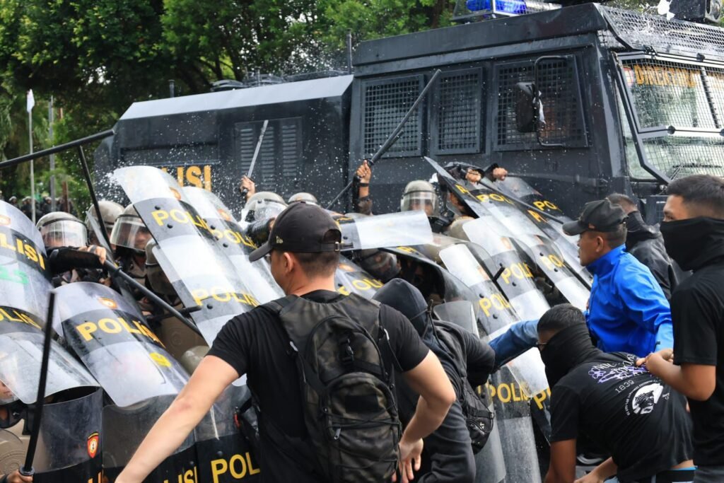 Dari pantauan, simulasi itupun Menampilkan, skenario unras yang awalnya, Berlangsung tertib namun berubah menjadi anarkis,