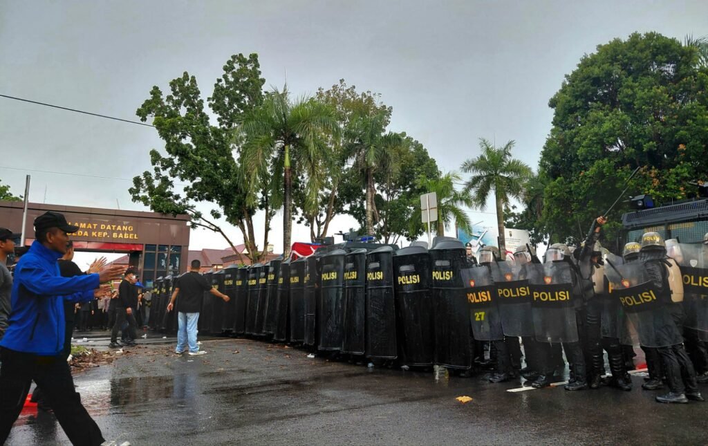 Pasukan tim Negosiator Polwan, dan Dalmas inti hingga tim taktis Sat Brimob Polda Kep. Babel, diterjunkan dalam aksi simulasi untuk menunjukan Prosedur, penanganan konflik yang mengedepankan Humanis dan, keselamatan masyarakat,