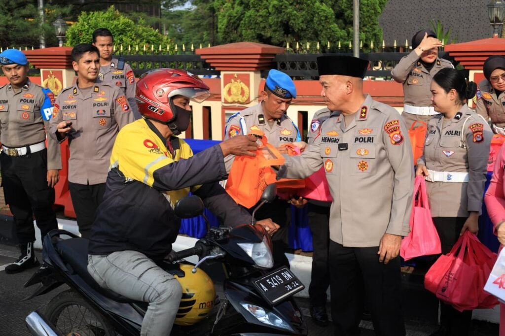Global Rise TV (Serang) – Polda Banten melaksanakan kegiatan bagi takjil kepada masyarakat di sekitar Mapolda Banten pada Senin (09/03).