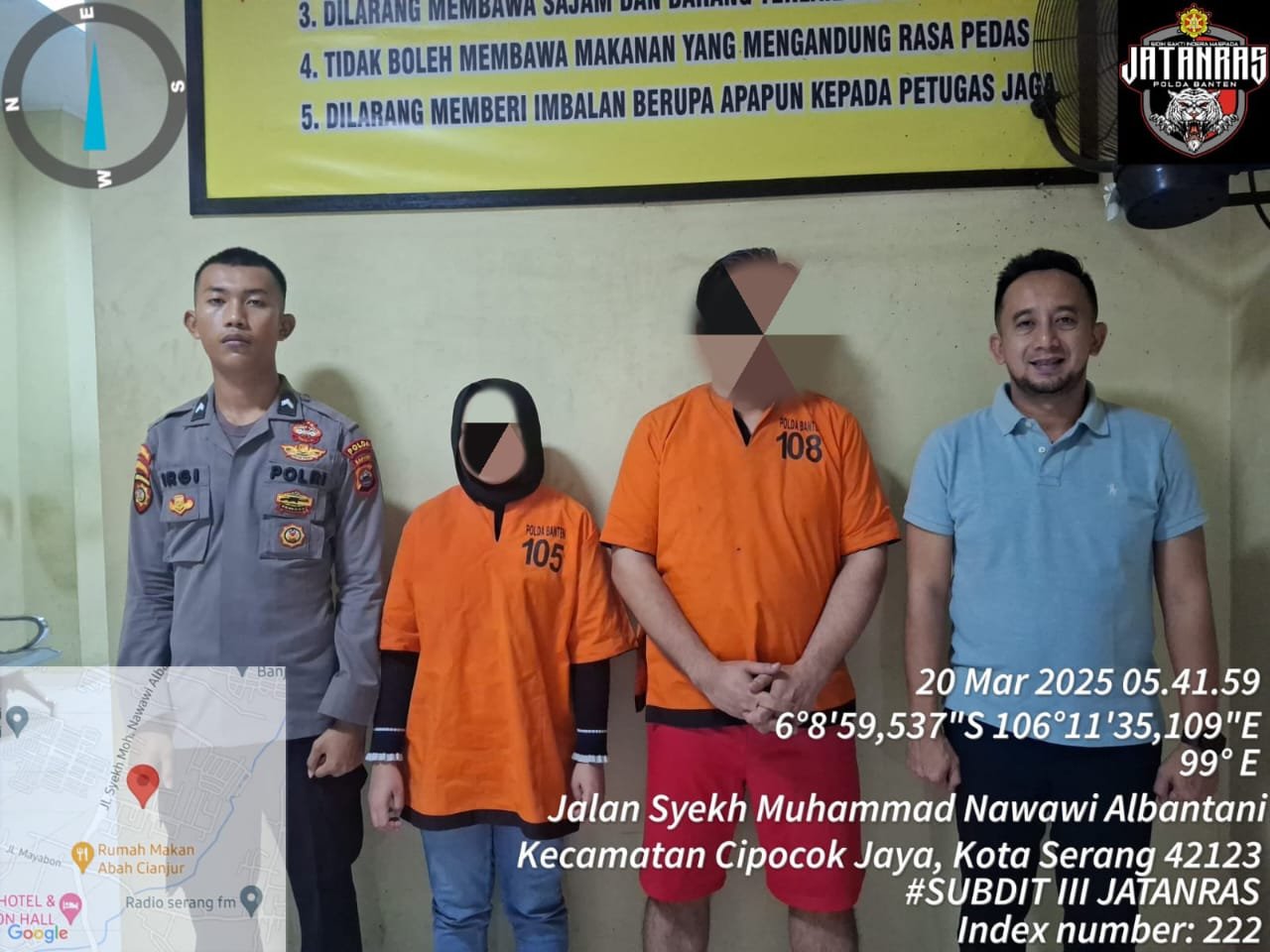 Global Rise TV (Serang)-Tim Subdit III Jatanras Ditreskrimum Polda Banten berhasil tangkap dua Tsk yakni AW (26) dan JE (37), Keduanya ditangkap di Jalan Ciumbuleuit, Hegarmanah, Cidadap, Kota Bandung, Jawa Barat. Pada Rabu (19/03).