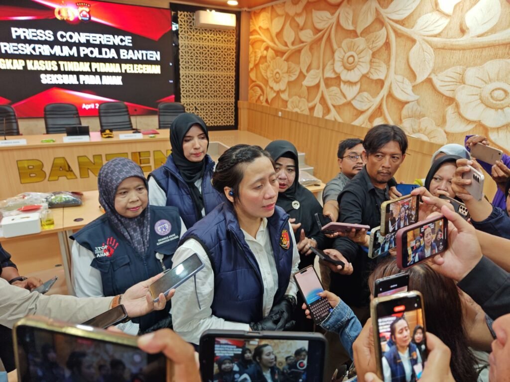 Dalam Press Conference yang di gelar Ruang Ditreskrimum Polda Banten pada Senin (20/04). Kegiatan dipimipin oleh Kabid Humas Polda Banten Kombes Pol Maruli Ahiles Hutapea didampingi Kasubdit IV Renakta Ditreskrimum Polda Banten AKBP Irene Missy dan dihadiri oleh perwakilan Komnas Perlindungan Anak Kabupaten Serang.