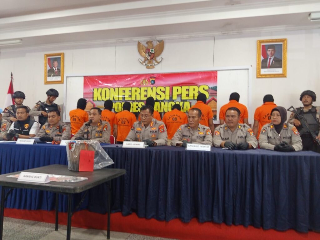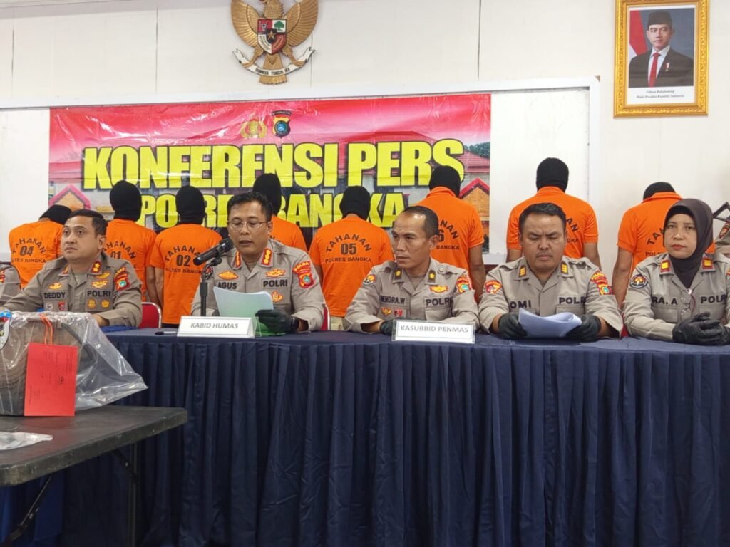 Konferensi pers tersebut turut dihadiri Kapolres Bangka, AKBP Deddy Dwitiya Putra, Wakapolres kompol Yusua Admaja, Kasi Humas AKP Era Anggraini, Kasat Reskrim AKP Mauldi Waspadani, serta para pejabat utama Polres Bangka,