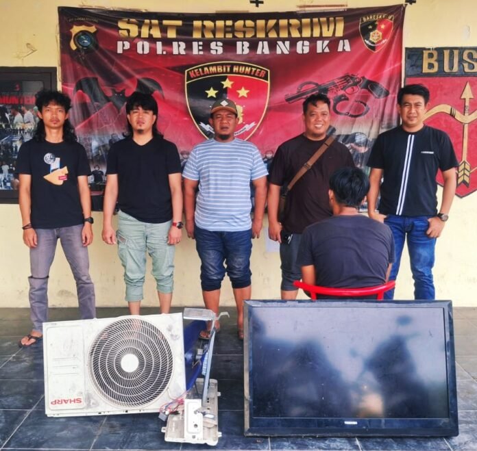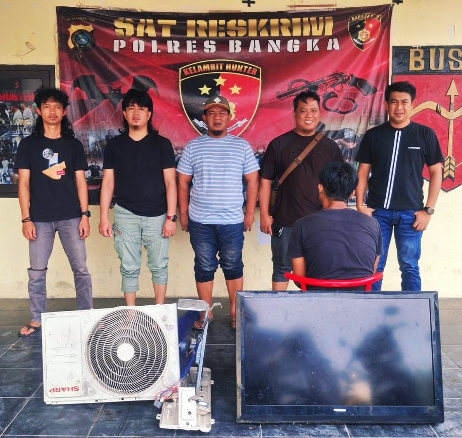 Dalam pengungkapan kasus tersebut Polres Bangka, turut mengamankan Barang bukti berupa satu unit Televisi, merek Toshiba warna hitam serta, satu unit mesin Outdoor (AC) rusak merek Sharp warna putih,