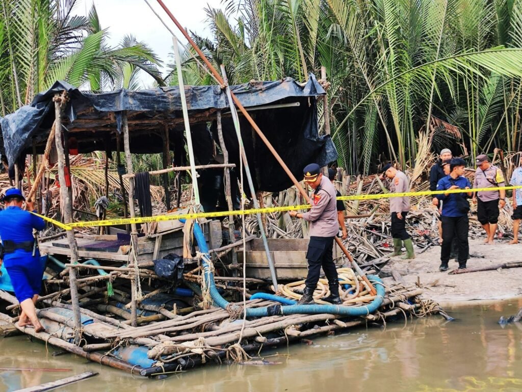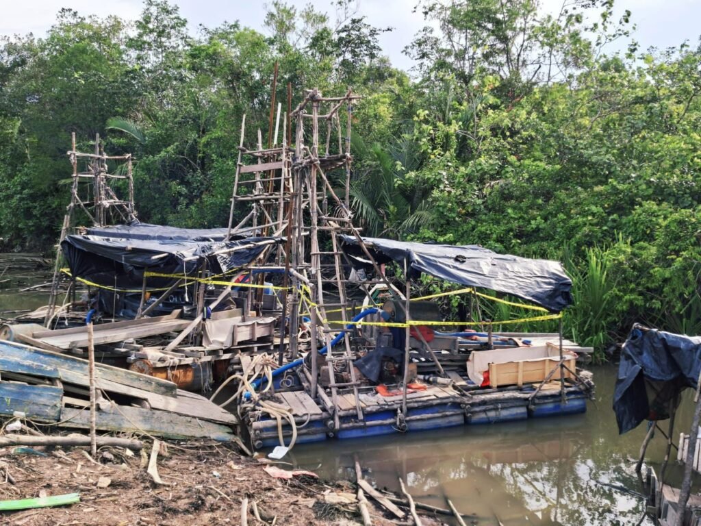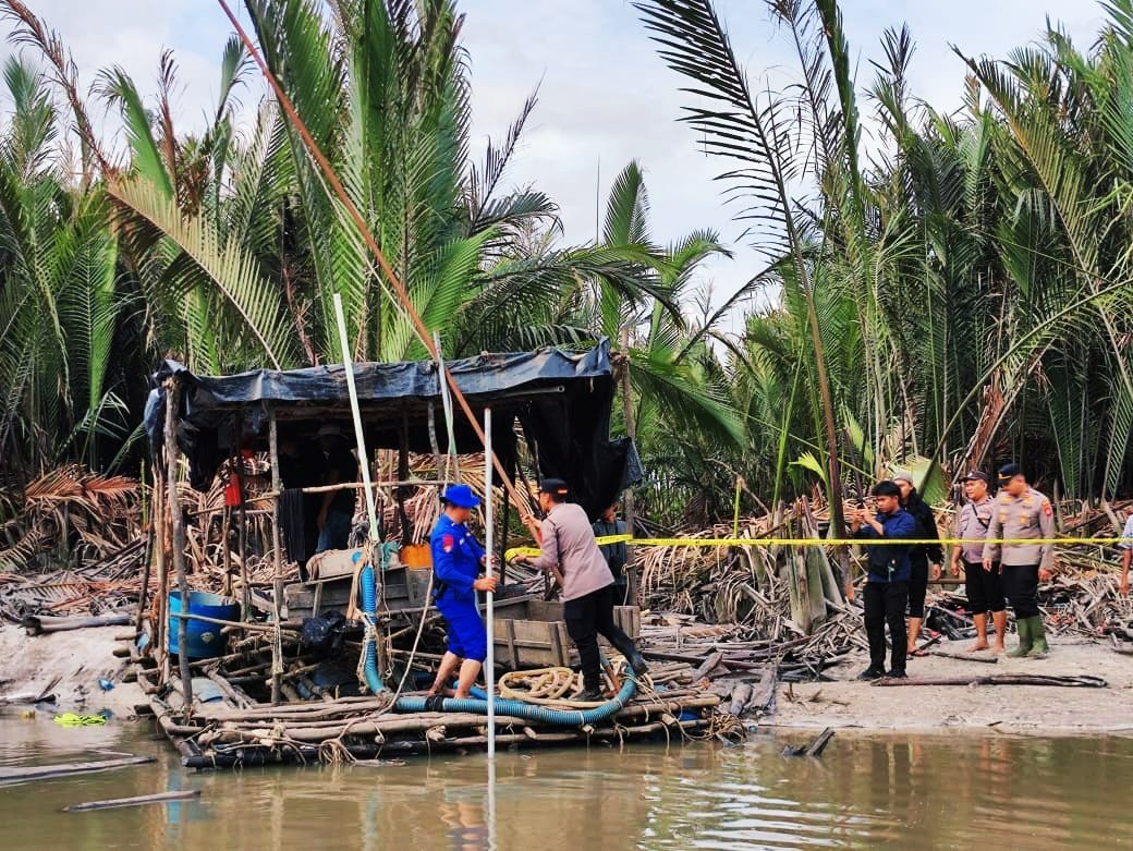 Dalam kegiatan tersebut, petugas Menemukan sejumlah ponton, yang masih Berada di lokasi dan diduga, digunakan untuk Aktivitas tambang, ilegal sebagai langkah awal penegakan hukum, petugas langsung Mengamankan, lokasi dengan Memasang police, line guna kepentingan, penyelidikan lebih Lanjut,