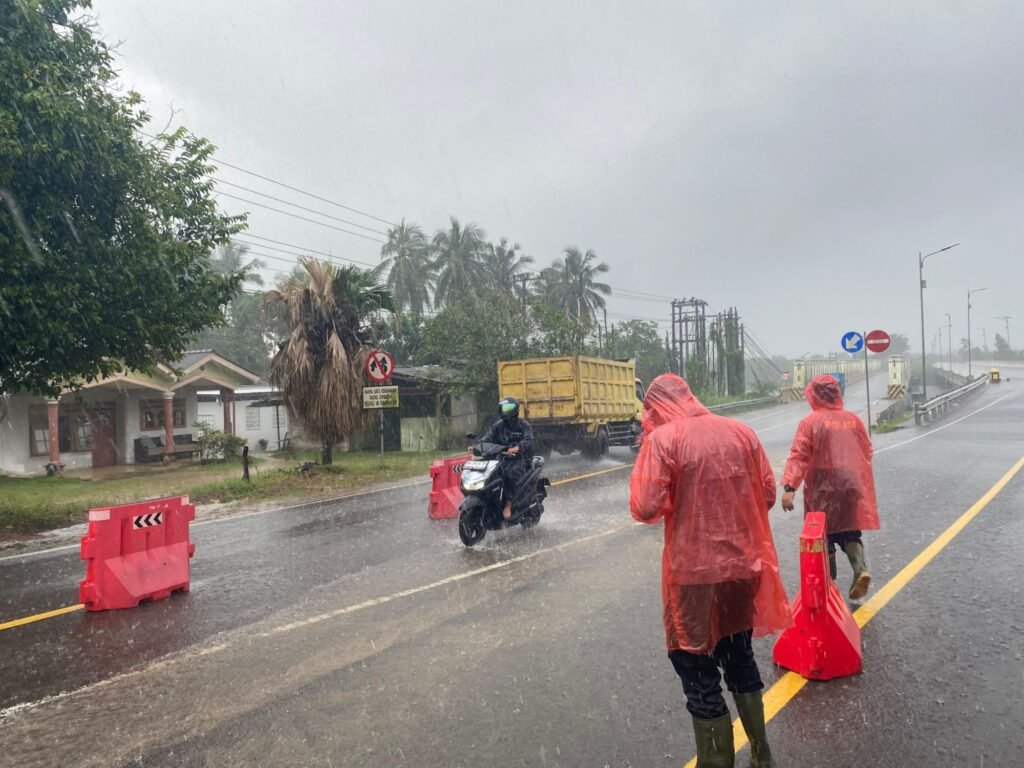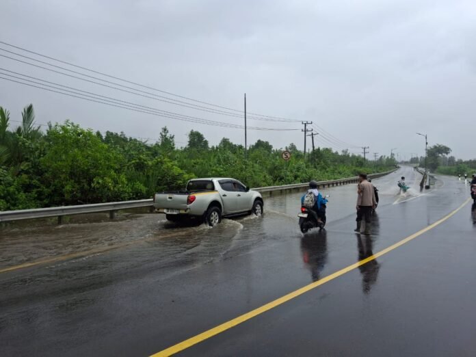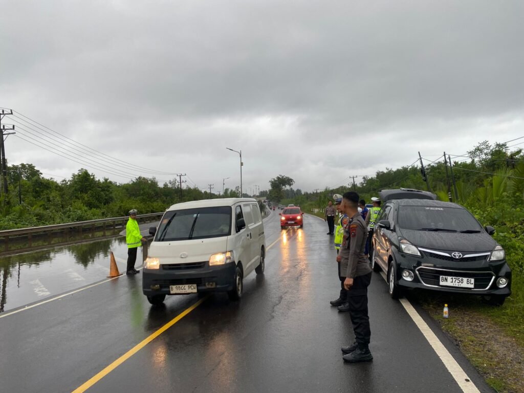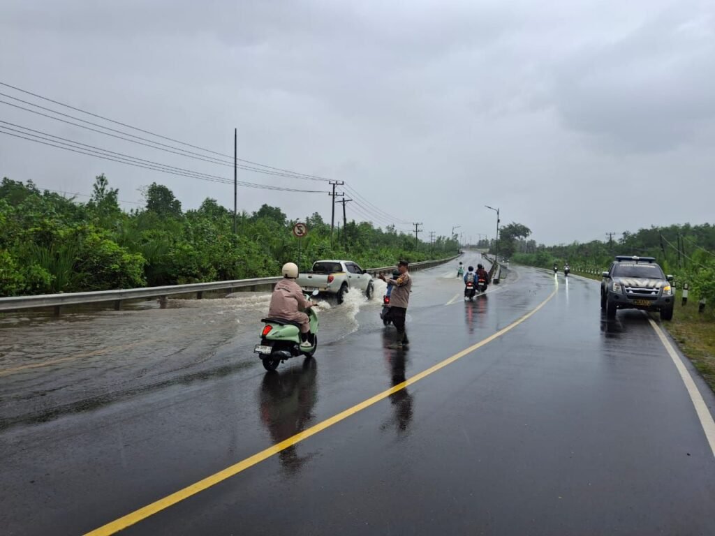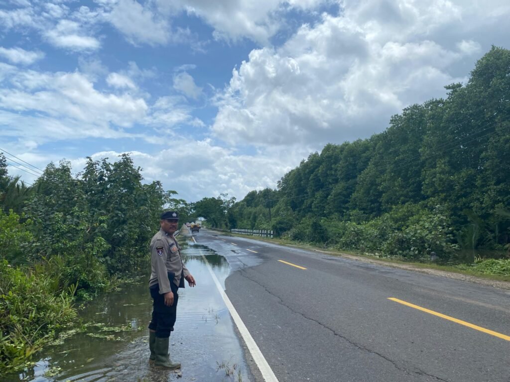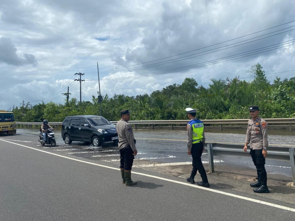 Polres Bangka dan Polsek Merawang Gerak Cepat Air Meluap ke Jalan Antisipasi Kecelakaan