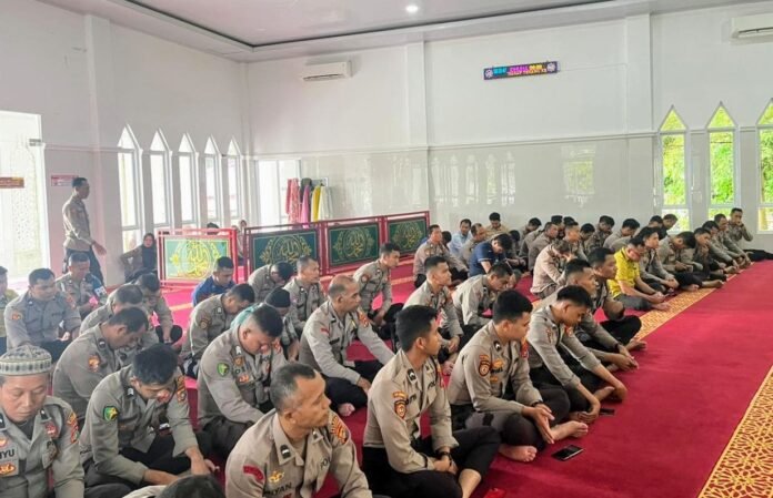 Global Rise TV (Bangka Sungailiat) Polres Bangka, menggelar pembinaan Rohani dan mental (Binrohtal) bagi seluruh personel dan aparatur sipil Negara, (ASN) kegiatan, Berlangsung serentak di Masjid, Al-Inda dan Aula Tribrata Polres Bangka, dimulai pukul 08.10.WIB. Kamis Pagi (18/09/2025),