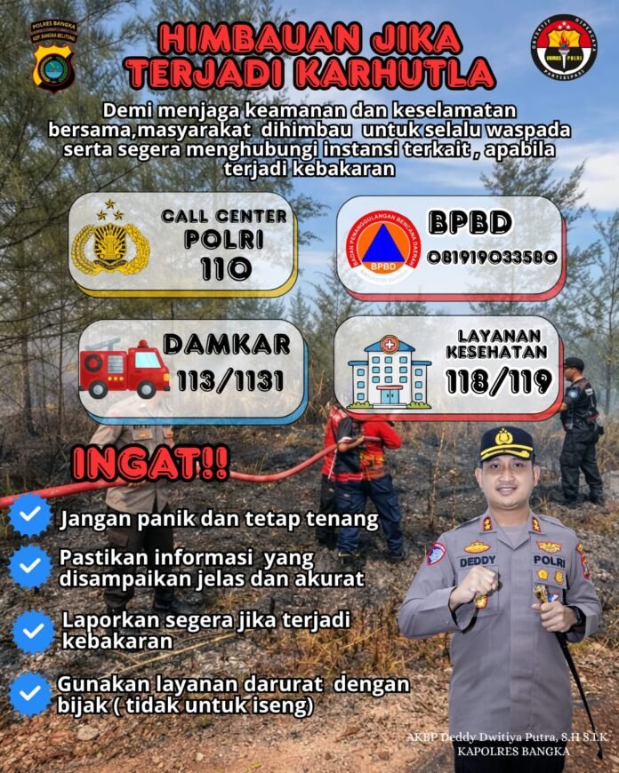 Global Rise TV (Bangka)-Dalam upaya Meningkatkan, kewaspadaan terhadap kebakaran, hutan dan lahan (karhutla) Polres Bangka, mengeluarkan imbauan kepada, seluruh Masyarakat agar tetap tenang dan sigap Apabila, terjadi kebakaran di wilayahnya, Rabu (01/04/2026)
