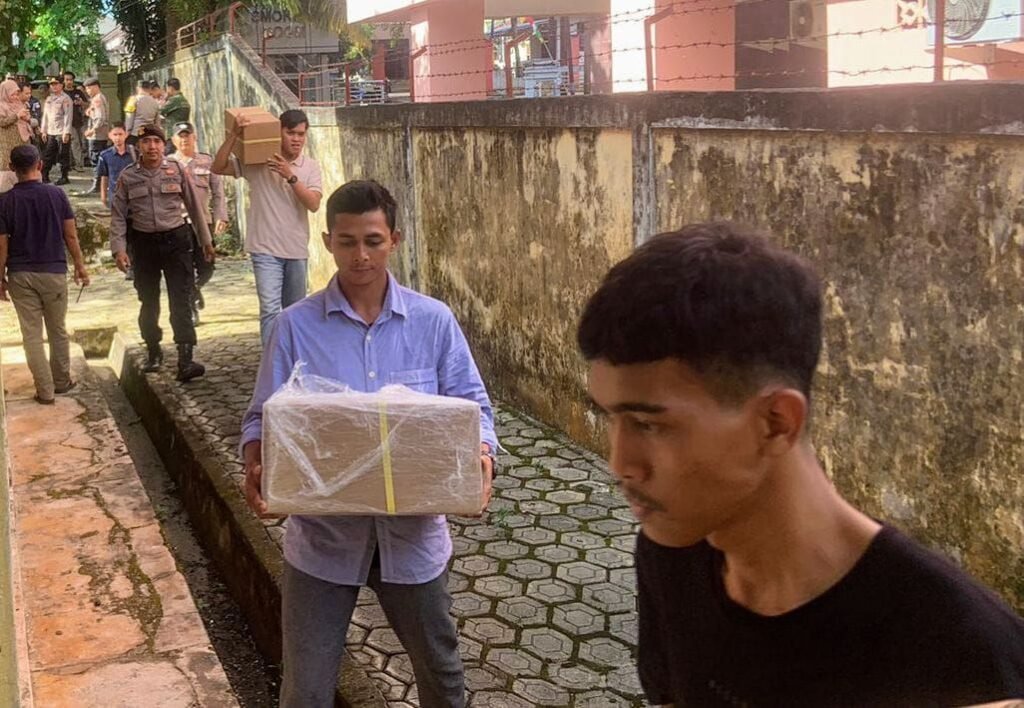 Global Rise TV (Bangka Sungailiat)-Sebanyak 250-857 lembar surat suara untuk Pilkada Ulang Bangka 2025, tiba di Gudang Logistik (KPU) Mess Melati, jalan pemuda, Sungailiat, Kamis (14/08/2025) sore. Logistik ini dikirim dari PT. Percetakan Gramedia Cikarang, Kabupaten Bekasi,