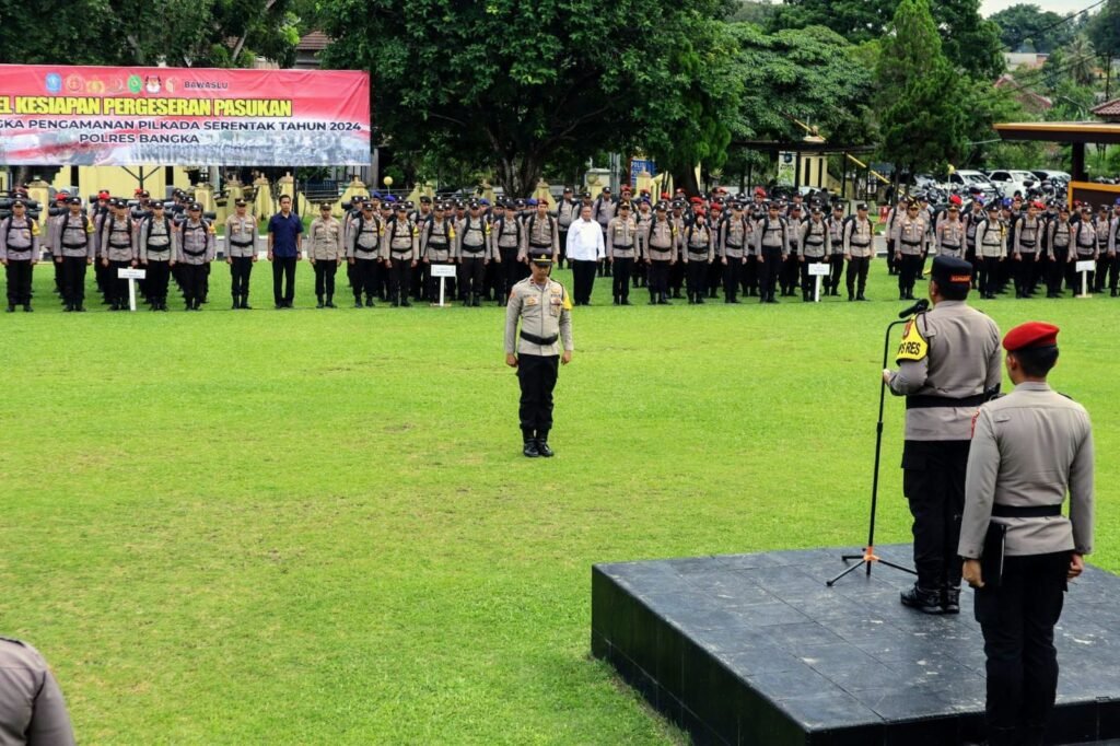 Global Rise TV (Sungailiat)-Polres Bangka menggelar Apel pergeseran pasukan dalam rangka Operasi Mantap Praja menumbing 2024, untuk Memastikan kesiapan pengamanan Pemilihan kepala daerah (Pilkada) Serentak, Apel berlangsung di halaman Mako Polres Bangka, Sungailiat, pada Senin Siang (25/11/2024).